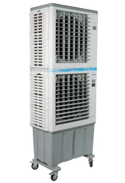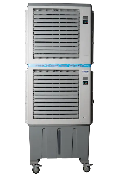 Double controller and double outlet / 3 speeds / Electronic panel / 120L big water tank / Nylon 4 blade / High quality silent fan / 100% new PP shell / Pure copper motor / Odor-free cooling pad / strong wind / energy saving / 5 meters Cable winding storage / 10-meter remote control / 1-8 hour Delayed Shutdown / quick pipe connect / Water-drop wind bar / Dust-proof filter / Swivel caster with brake / Stainless steel screws / Evaporation rate >92 % / UV germicidal lamp+Circulating water pump(optional)